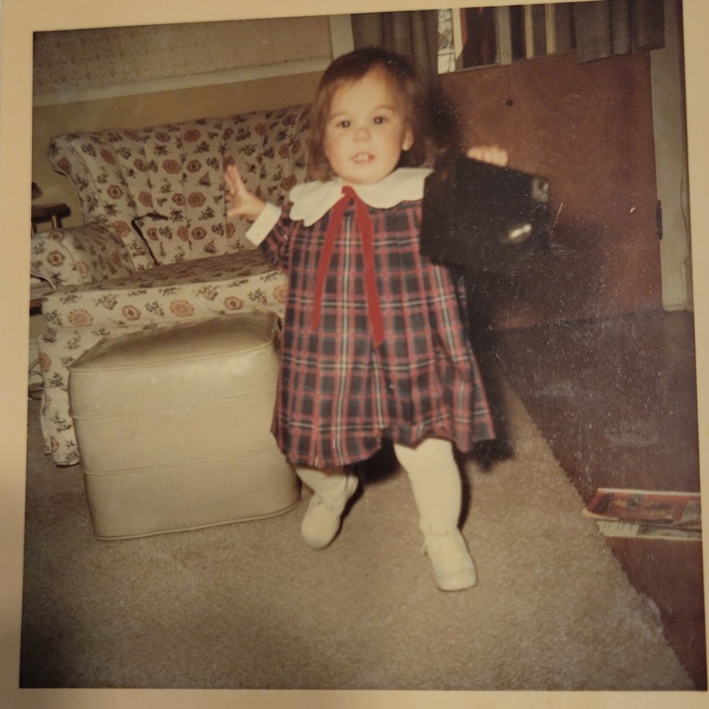 So there I am at possibly 2 years old carrying a pocketbook. There I am again at 57 years old standing in the water with, you guessed it, a pocketbook. This one makes me laugh, because seriously, in the ocean?!